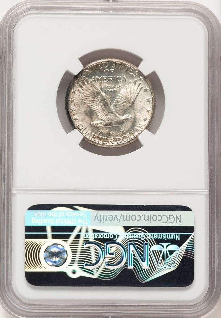 To maintain the pristine condition of this certified Standing Liberty Quarter, handle it with care. Store it in a cool, dry place, away from direct sunlight and extreme temperature fluctuations. The NGC certification protects the coin and provides assurance of its authenticity and grade. Avoid cleaning or attempting to alter the coin in any way, as this can diminish its numismatic value.