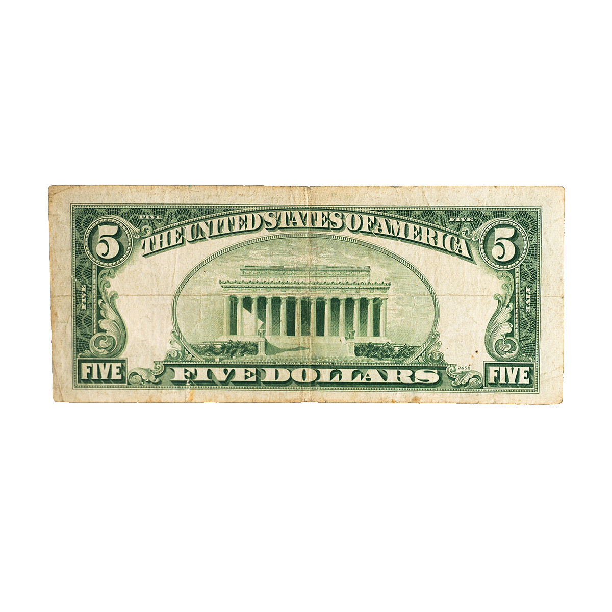 This authentic 1953 $5 United States Note (Red Seal) is a standout example of mid-century American paper money. Displaying a bold portrait of Abraham Lincoln on the front and the Lincoln Memorial on the reverse, this note represents a historic chapter in U.S. currency, one in which United States Notes, not Federal Reserve Notes, were still being issued directly by the Treasury. Its vivid red seal and red serial numbers make it instantly recognizable and highly sought after among collectors.