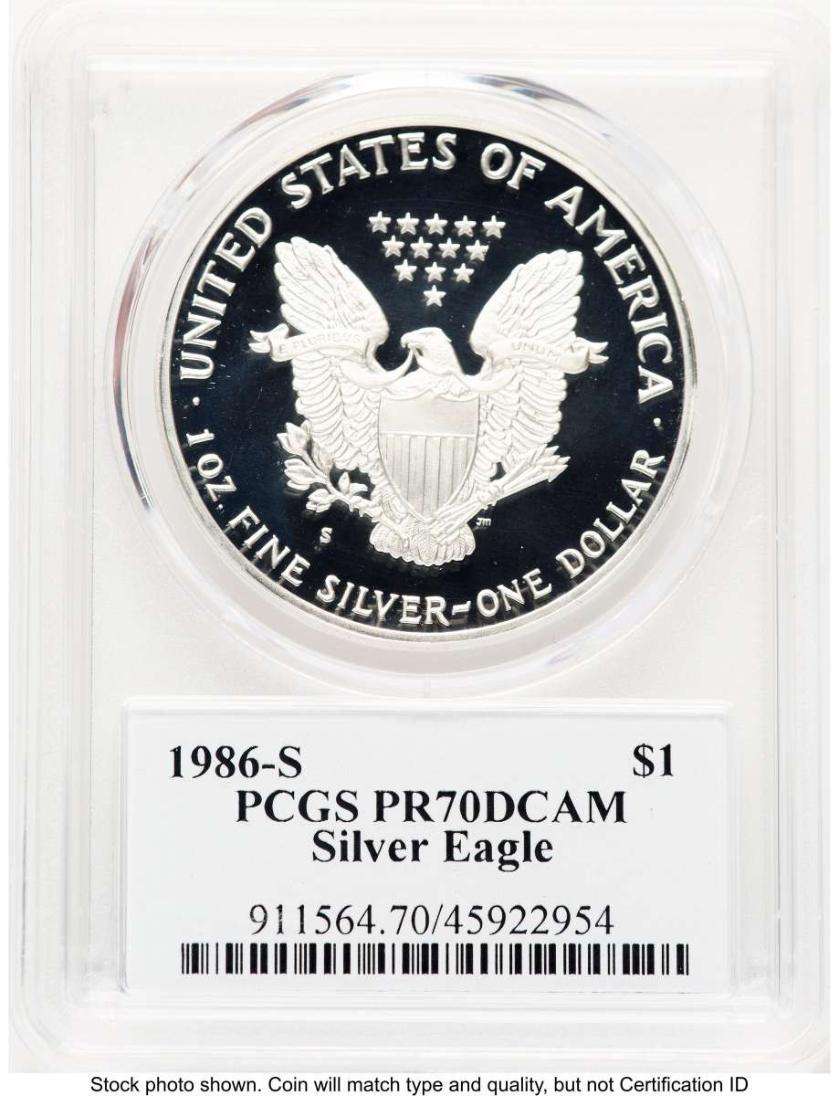 1986-S $1 Proof American Silver Eagle Coin PCGS PR70 DCAM - Thomas D. Rogers Sr. Signature