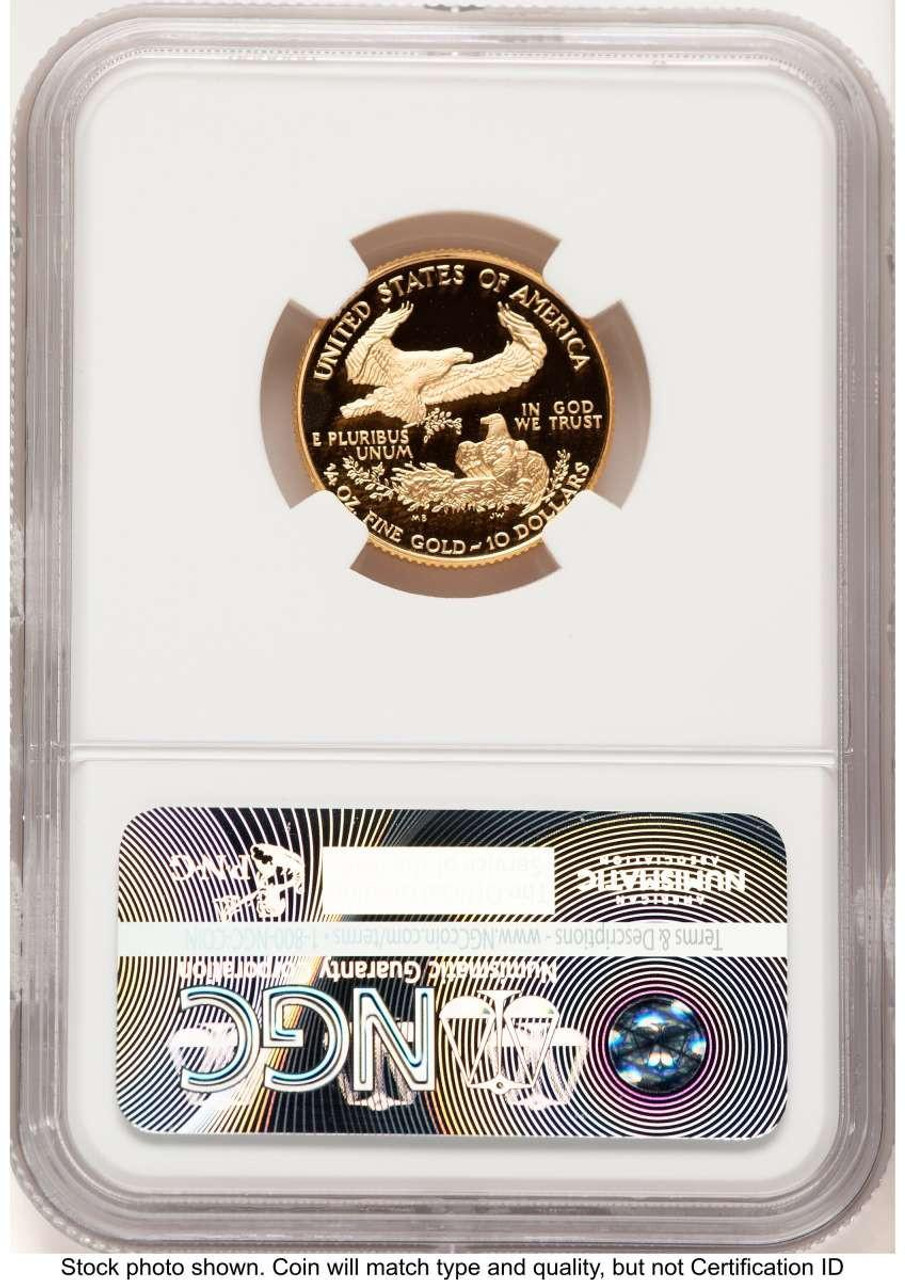 Opportunities to acquire a 1997-W $10 1/4 oz American Gold Eagle Proof coin in perfect NGC PF70 condition are rare and fleeting. Given its low mintage, exquisite grade, and enduring appeal, this highly desirable gold coin is a centerpiece for any collection. Don't miss your chance to own a piece of American coinage history in unparalleled quality. Add this magnificent certified gold eagle to your collection now before it's gone.