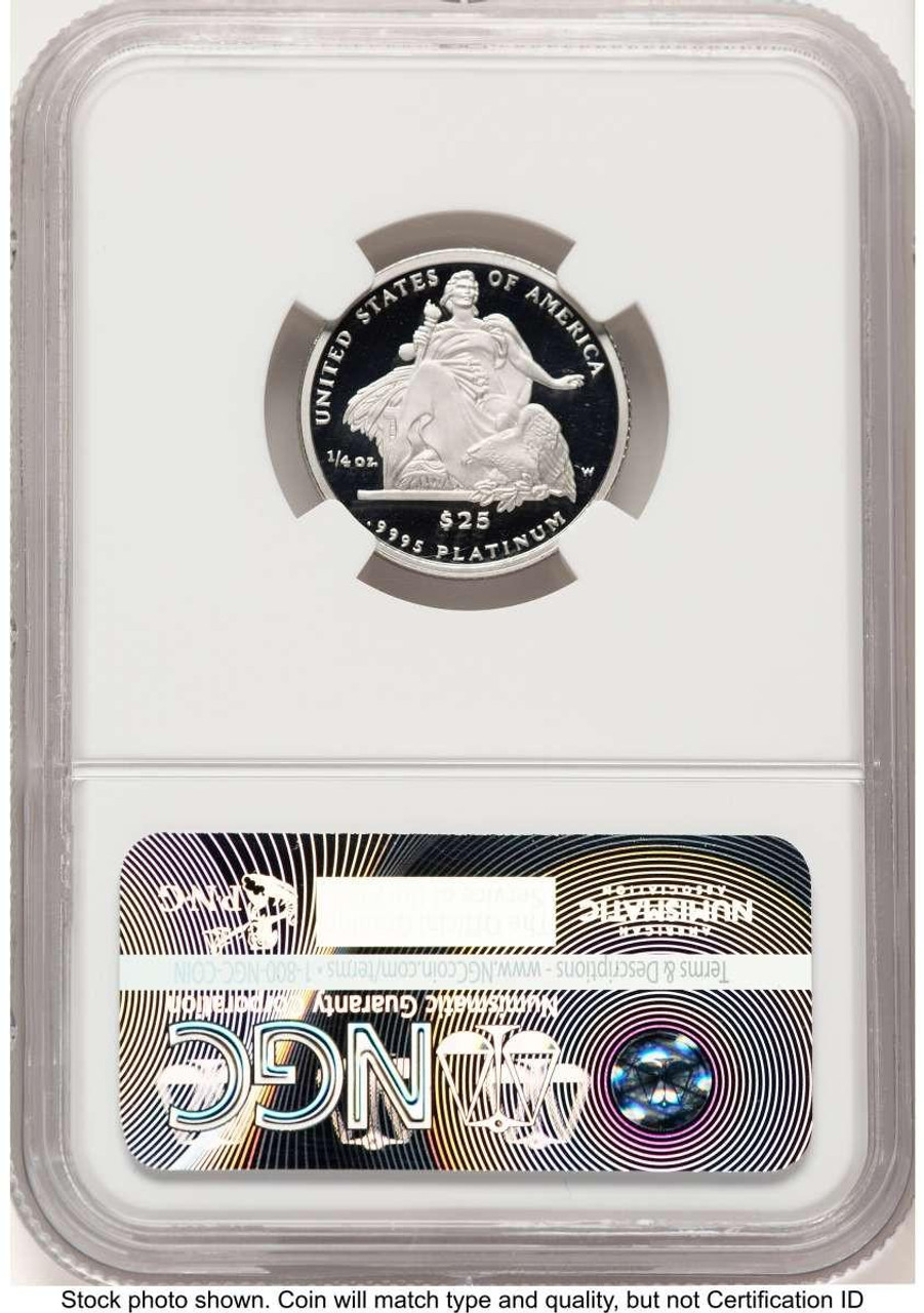 Opportunities to acquire a 2004-W $25 1/4 oz Platinum Eagle in flawless NGC MS70 condition are exceptionally rare. This outstanding coin, with its pristine grade and iconic design, is highly coveted by collectors worldwide. Don't miss the chance to enhance your collection with this magnificent piece of American numismatic artistry. Add this perfect Platinum Eagle to your holdings before it's gone.