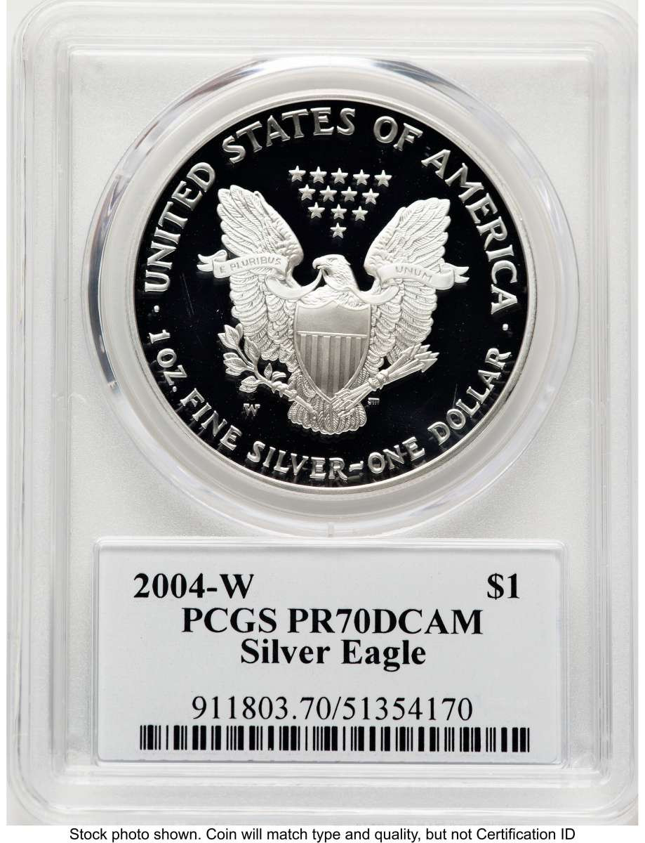 2004-W S$1 Proof American Silver Eagle Coin PCGS PR70 DCAM