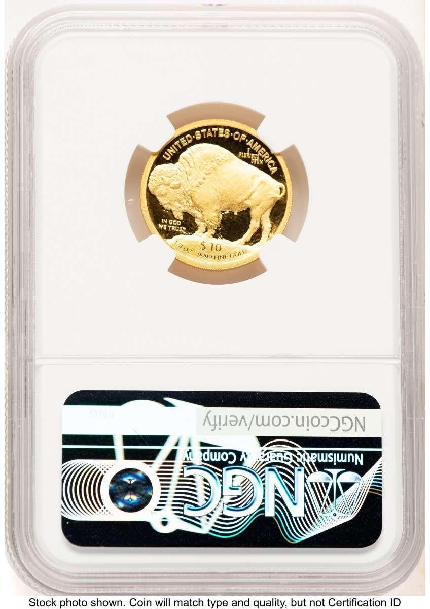 Do not miss the opportunity to own this remarkable and pristine 2008-W $10 Proof 1/4 oz American Gold Buffalo Coin. With its rare combination of a perfect PF70 UCAM grade and limited mintage, this coin is a significant addition to any discerning collection. Add this exquisite gold buffalo to your holdings today before it’s gone!