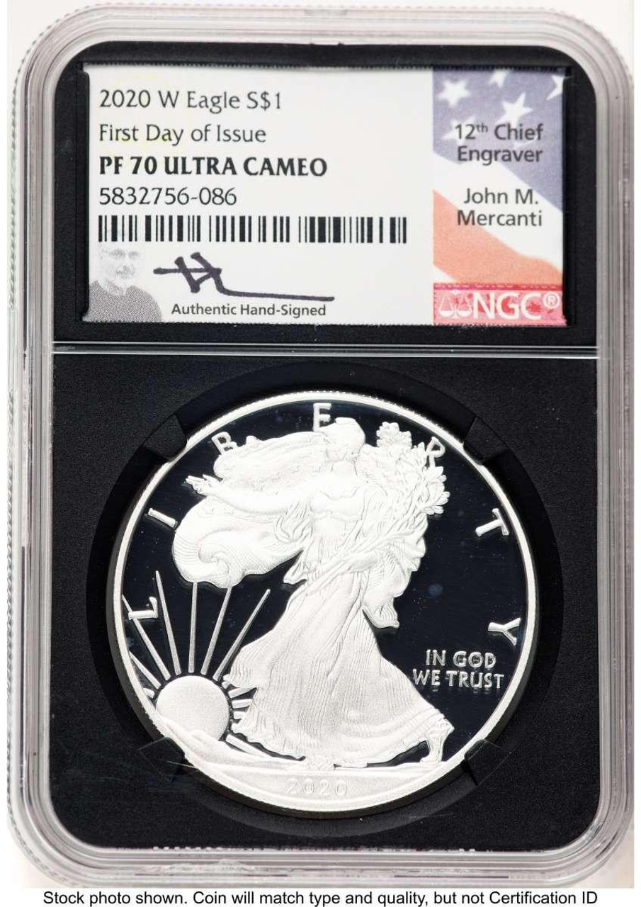 2020-W American Silver Eagle S$1 NGC MS70, First Day of Issue