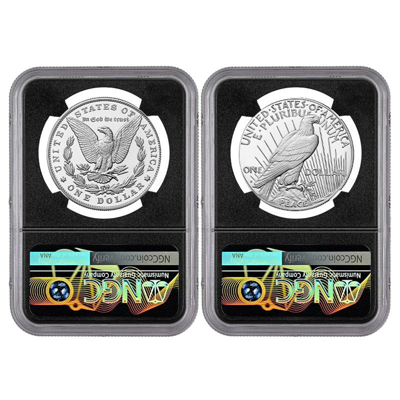 2023 Morgan and Peace Dollars in a stunning PROOF FINISH are FINALLY HERE! After an unprecedented frenzy when these iconic silver dollars were first re-released in 2021, collectors have been waiting with baited breath for more to come from the US Mint! This year, they will be released in Proof and Reverse Proof finish as well! With only 400,000 sets minted this year, these will be hard to get in perfect condition. These coins have never been minted in this finish before, so you want to collect the best of the best. Seize this opportunity with this Magnum Opus label set, a label awarded to coins that have masterpiece-level designs. Add this new innovation on two iconic coin series to your collection today, as only 25 sets are available for pre-order!