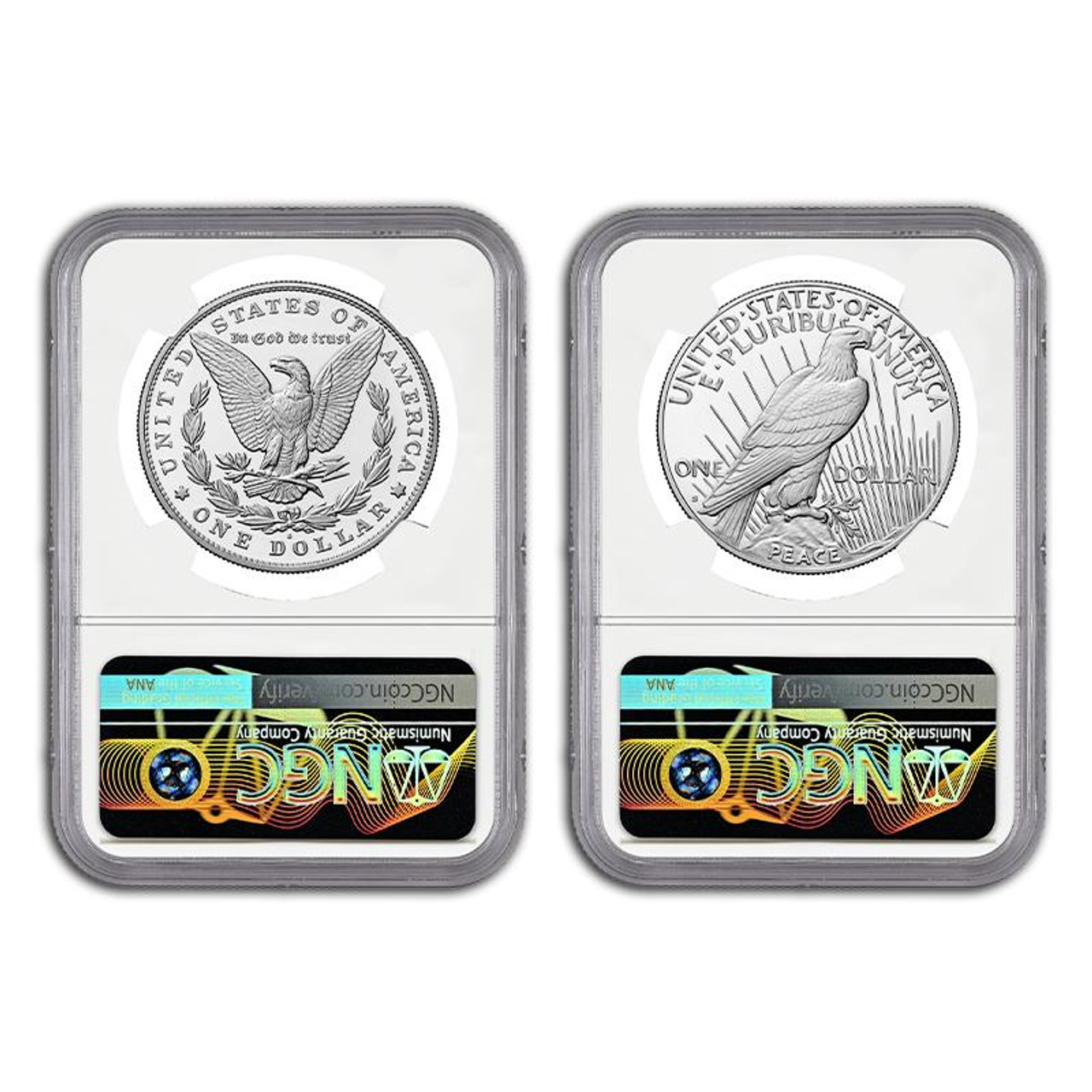 The 2023-S Morgan & Peace Dollar NGC PF70 UCAM Thomas Uram Signed - 2pc Set is an extraordinary collector’s item that captures the rich heritage and timeless elegance of American numismatics. This set features two iconic dollar coins reimagined for a new generation, each graded at the pinnacle of perfection, PF70 Ultra Cameo, by the highly respected Numismatic Guaranty Corporation (NGC).