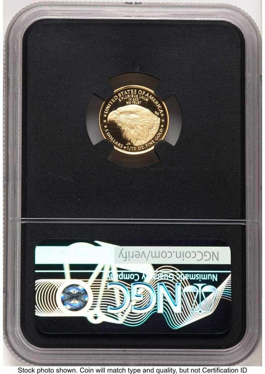 Opportunities to acquire such flawlessly graded, First Day of Issue Gold Eagles are rare and highly sought after. Enhance your collection with this remarkable 2023-W G$5 Tenth Ounce Gold Eagle. Its perfect grade and exclusive designations make it a premier choice for any serious collector. Add this splendid piece of American numismatics to your holdings before it's gone!