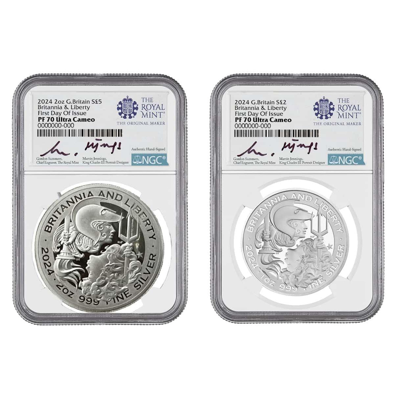 2024 Great Britain “Britannia & Liberty” Silver Proof 2-Coin Set – NGC PF70 Ultra Cameo (First Day of Issue)