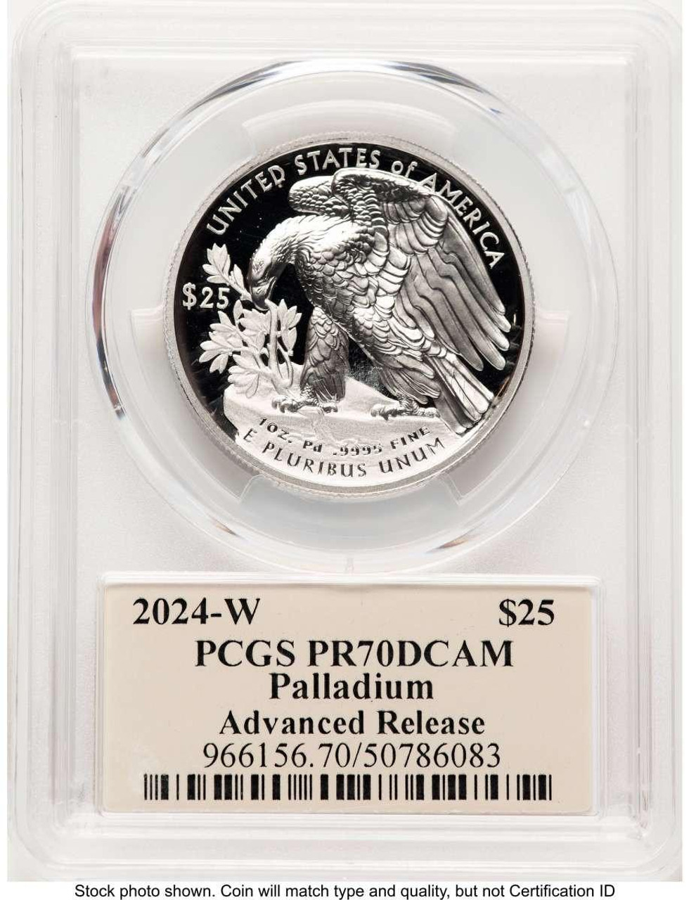 2024-W $25 Palladium Eagle Coin PCGS PR70, Advanced Release
