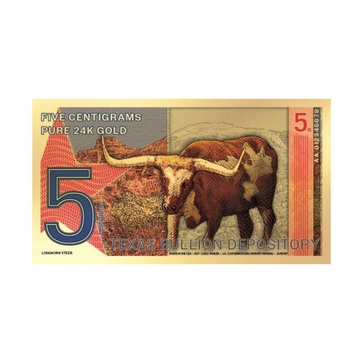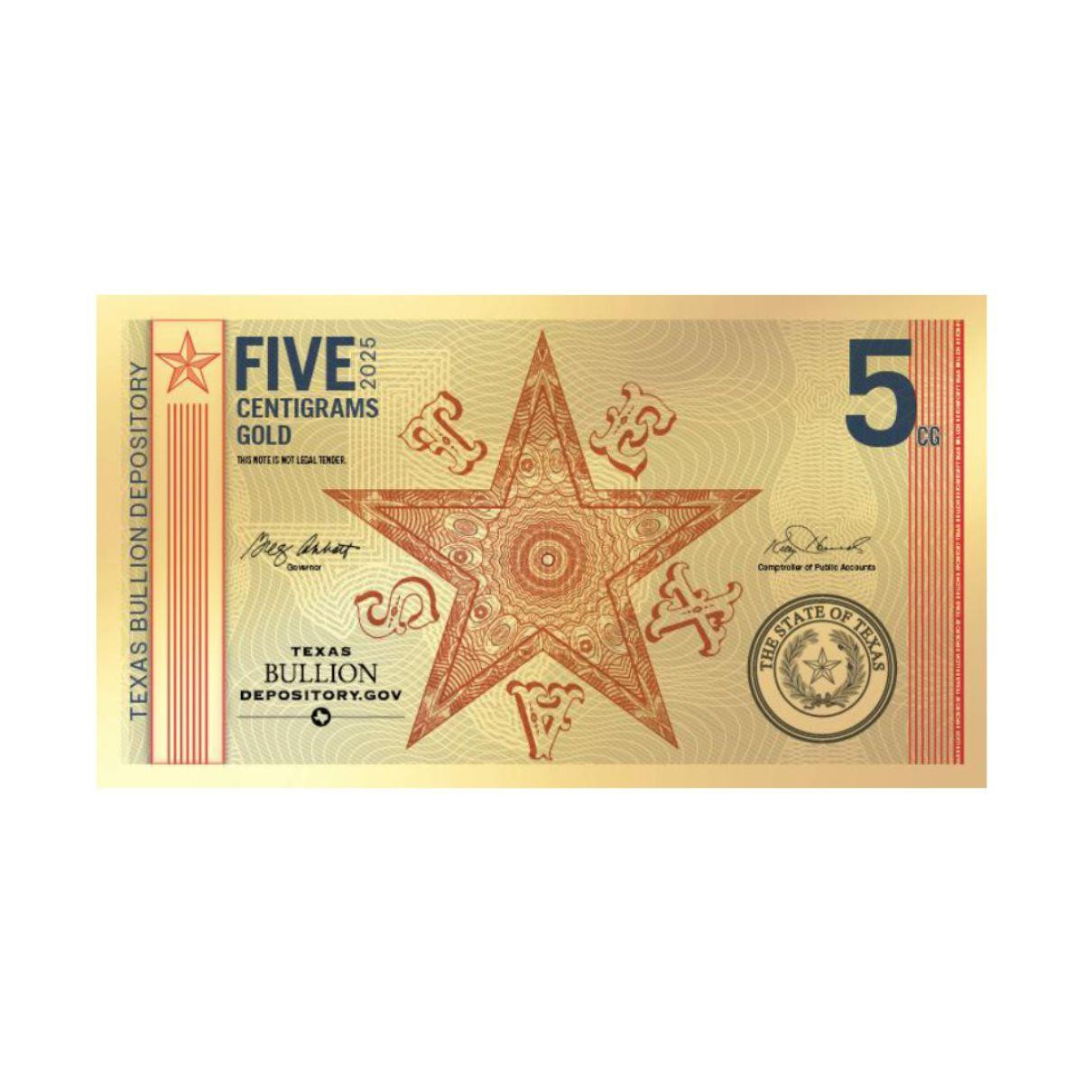 2025 5 Centigram Gold Texas Lonestar Note (State of Texas Official Gold Bill)