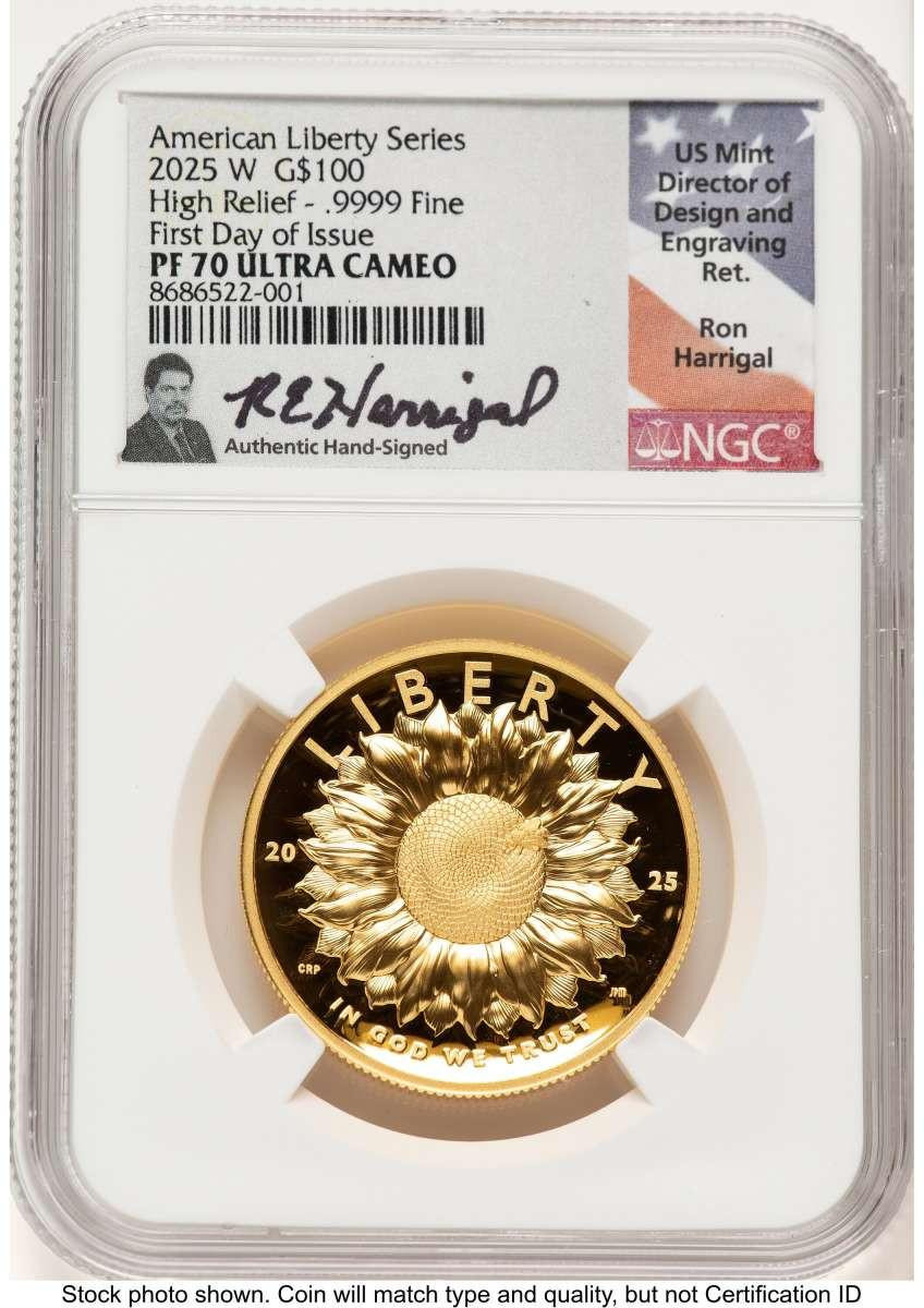 Discover an exceptional piece of modern numismatic artistry with the 2025-W $100 Gold High Relief American Liberty coin. This distinguished release from the United States Mint offers a captivating design struck with an advanced high-relief technique, setting it apart as a premier collectible. Certified in perfect NGC MS70 UCAM grade with a desirable First Day of Issue designation, this pure gold coin is a pinnacle acquisition for discerning collectors.