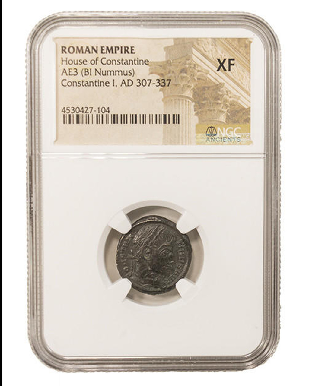 The Roman AE of Constantine I, the Great (AD 272-337), graded as NGC (XF), is a remarkable numismatic artifact that encapsulates a pivotal period in world history. This coin serves as a historical testament to the reign of Constantine, who is recognized for his monumental contributions to the Roman Empire and the establishment of Christianity as a sanctioned religion. Struck during his rule, this bronze coin features distinctive iconography, showcasing the emperor’s powerful visage alongside symbols associated with his reign.